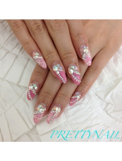 ジェルネイルデザインカタログ ネイルサロンマジーク 阿保雅子のネイルブログ ジェルネイルデザイン画像 ブライダルネイル バラ ウェディング ピンクカラーグラデーション ラインストーン 上品ネイル 夏ネイル 春ネイル ネイルサロンマジーク池袋店ネイリスト