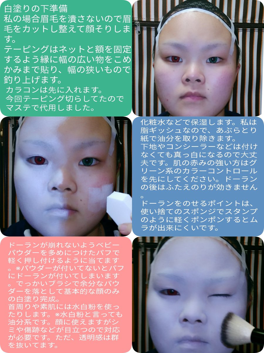 いづら元気になるんだ 基本的な白塗り こんすけ風メイク カラコンが違うのはご容赦願います コスプレメイク グリースペイント白粉 ベビーパウダー マジョマジョアイライナーブラック Kateアイライナーナチュラルブラウン マット系の赤ルージュ